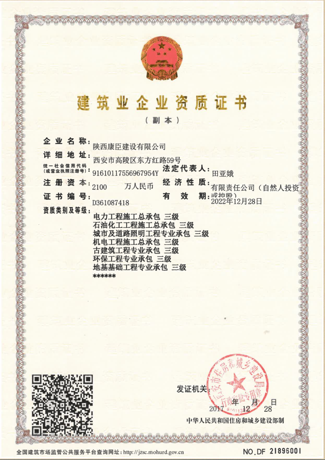 陜西康臣建設(shè)有限公司(簡(jiǎn)稱康臣建設(shè))始建于2010年6月,注冊(cè)資金2100萬(wàn)元整。公司是從事市政公用工程、房屋建筑工程、城市及道路照明工程、電力工程、石油化工工程為主的企業(yè),具有建筑工程施工總承包二級(jí)、市政公用工程施工總承包二級(jí)、鋼結(jié)構(gòu)工程施工專業(yè)承包二級(jí)、城市及道路照明工程專業(yè)承包、電力工程施工總承包、石油化工工程施工總承包、環(huán)保工程專業(yè)承包、機(jī)電工程施工總承包、地基基礎(chǔ)工程專業(yè)...more+